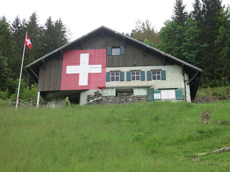 Ancienne fortification militaire suisse, camouflé en petit chalet, visiter un lieu charger d'histoire dans un cadre idylique.